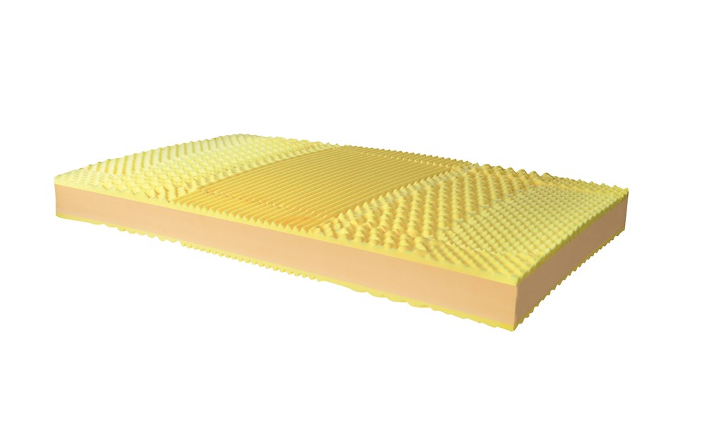 Oboustranná matrace.Jedna její strana je tvořenavrstvou Memory Foam (líné) pěnys nopkovou sedmizónovou úpravou, která zajistí uvolnění svalstva během spánku. Střed matrace je tvořen nosnou Poly Foam pěnou. Druhá strana matrace je opatřenavrstvou Poly Foam pěny s nopkovou sedmizónovou profilací. Vhodné uložení na laťový nebo lamelový rošt.Výška jádra matrace je 18 cmSnímatelný pratelný potah na 60.